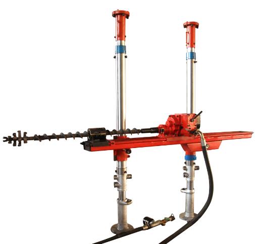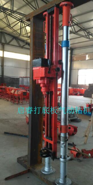 气动架柱式钻机是煤矿井下风动探水钻机,由主机和立柱两部分组成,钻机由高压胶管直接与煤矿井下高压气体管道连接,结构简单,搬运使用轻松。气动架柱式钻机扭矩大,转速快,煤层打孔效率高,施工人员用着顺手又方便。气架柱式钻机常规型号主要以水平及倾角为主,但有煤矿想用该款钻机打底板。启睿机械技术人员与客户沟通详细需求后对钻机进行改装。