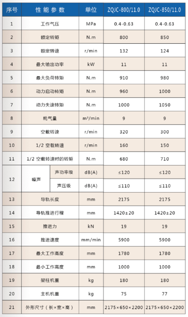 ZQJC800系列气动架柱式钻机产品简介 类别:气动架柱式钻机 型号:ZQJC-850/11.0S,ZQJC-800/11.0S, 品牌:河北启睿 用途:ZQJC-800/11.0S型气动架柱式钻机主要用于煤矿煤层探水、探排瓦斯 孔或地质结构孔的施工。该钻机转速更高,扭矩更大,功率更强、并可正反转、 大大提高了人机工作效率,是煤矿行业常用钻具之一。