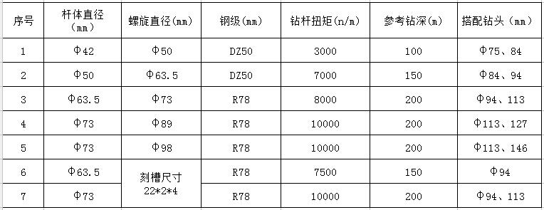肋骨钻杆是在地质钻杆的基础上,采用高耐磨平面螺旋叶片,经预应力缠绕全自动焊接而成。钻杆杆体采用优质地质钻探专用合金钢管,钻杆接头采用优质合金结构钢,经高压成型、真空调质处理、是摩擦焊接等生产工艺加工而成;肋骨钻杆在松软煤层和冲击地压条件下大大降低了钻杆抱死、钻具损坏丢失现象。另外,由于肋骨钻杆较宽的螺旋叶片,使得肋骨钻杆在钻孔施工中不会切削钻孔的孔壁,不会造成孔壁的偏斜而影响钻孔效果。刻槽钻杆也称为本体肋骨钻杆,是在加厚优质合金钢管的基础上,利用数控加工工艺,进行管体铣槽,相对于肋骨钻杆而言,刻槽钻杆具备了肋骨钻杆排渣速度快、旋转阻力小的优势,同时在进行深孔钻探时,由于一体式的设计工艺及其壁厚的优势,其耐磨性能更好,使用寿命更长。