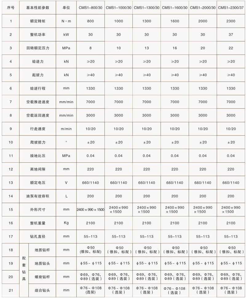 CMS1-1200/30型煤矿用深孔钻车产品介绍 类别:煤矿深孔钻车 型号:CMS1-1200/30 品牌:河北启睿 用途:CMS1-1200/30型煤矿用深孔钻车是新一代履带行走的探水、探瓦斯、 探断层、放顶、注水等的钻孔设备,主要用于掘进工作面有防突措施要求 的在软岩或煤层中实施密集形钻孔,也适用于其他场合。该设备具有结构 紧凑、操作灵活、机动性好、全断面作业、安全性能好、一机多用等特点。 除完成探水、探瓦斯工作外,还可钻进复杂地层。它配套普通扩孔钻头等 钻具可进行回转钻进。